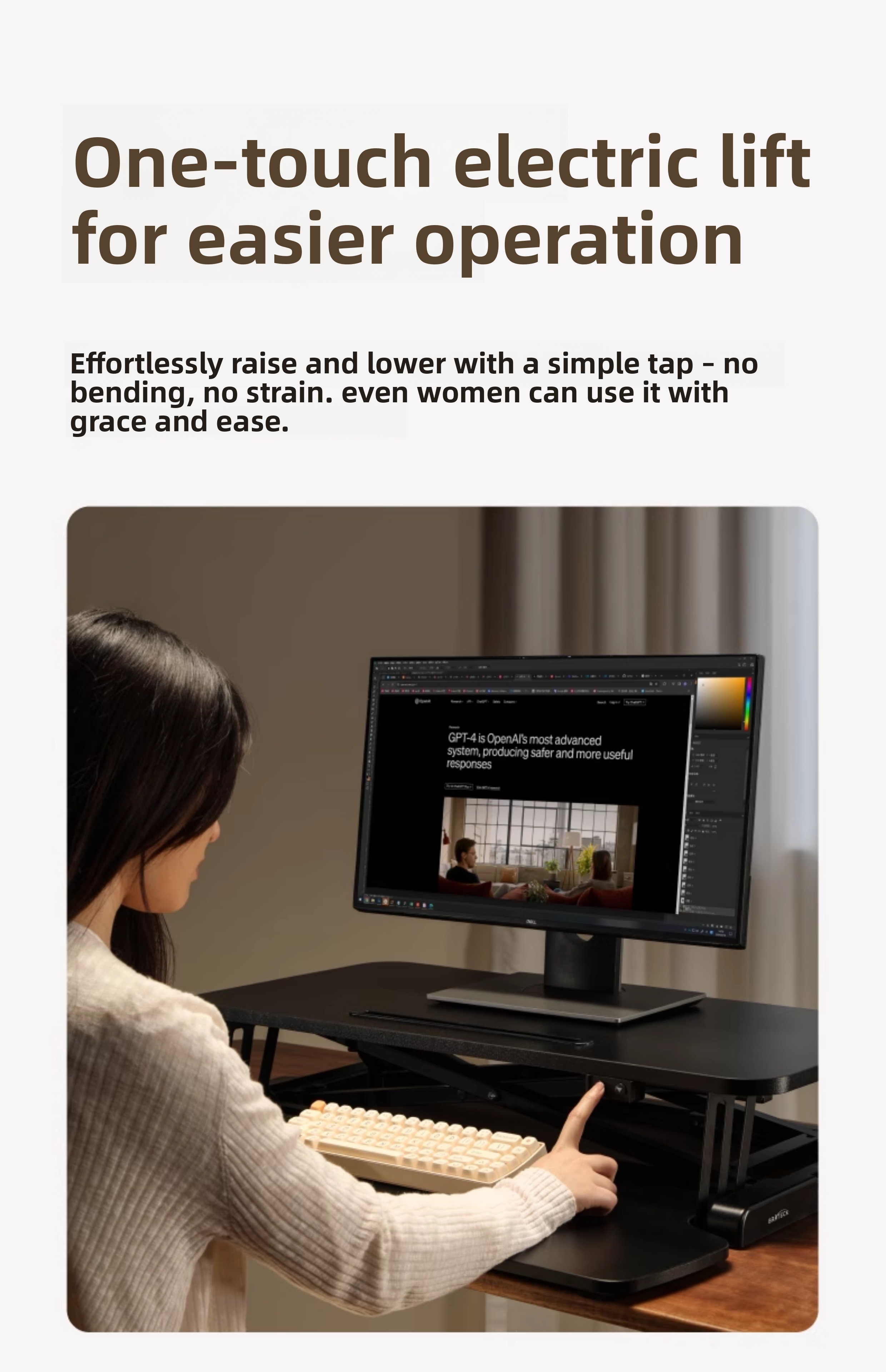 Adjustable Height: Electric lift mechanism allows easy height adjustment for standing or sitting work.